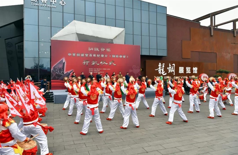 劉娜在儀式上宣布《鋼鐵脊梁》紀(jì)錄片正式開機(jī),陳玉千、劉娜和楊海峰共同為《鋼鐵脊梁》紀(jì)錄片開機(jī)揭幕,與會(huì)人員還共同觀看了龍鋼公司龍門鋼鐵行鼓隊(duì)表演的威風(fēng)鑼鼓。
