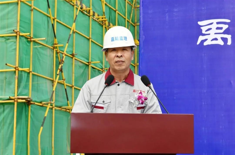 監理單位代表和施工方代表分別作了發言。劉安民宣布主體正式封頂。