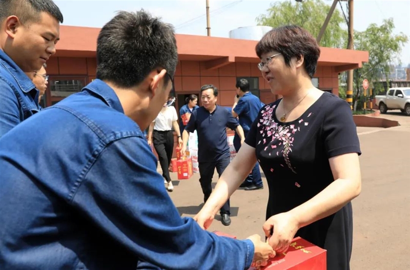 7月7日,渭南市總工會(huì)黨組書記、常務(wù)副主席侯雪靜,渭南市總工會(huì)黨組成員、副主席李詩穎,韓城市總工會(huì)常務(wù)副主席李養(yǎng)義一行來公司一線慰問送清涼。公司黨委委員、工會(huì)主席趙春棠及相關(guān)部門負(fù)責(zé)人參加慰問。