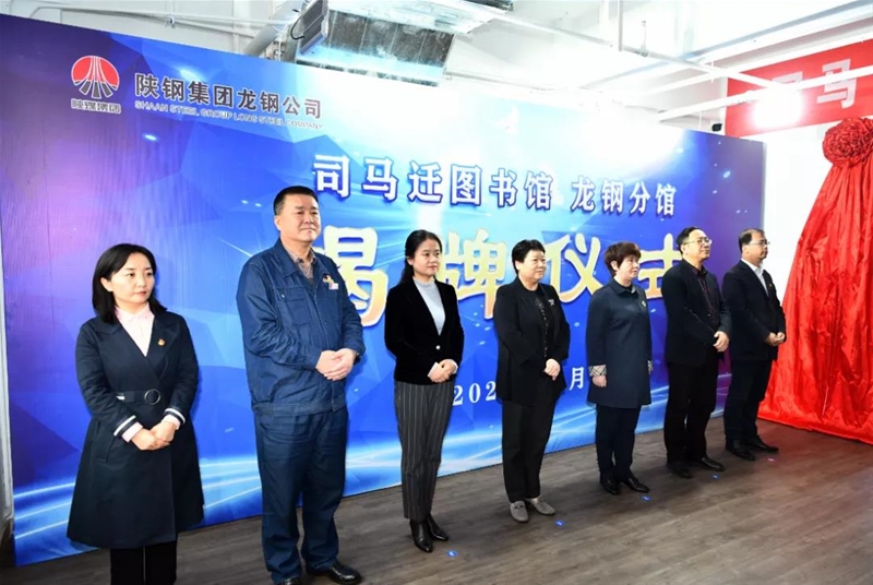 10月19日,韓城市司馬遷圖書館龍鋼分館開館揭牌儀式在龍鋼公司大學生公寓樓三樓舉行。陜西省總工會黨組成員、女職委主任、省婦聯兼職副主席李秀華,陜西省機械冶金建材工會主席譚小榮,陜煤集團工會副主席、女職委主任石秀云,陜鋼集團黨委副書記、工會主席武軍強,韓城市文化和旅游局副局長杜朝建,龍鋼公司黨委書記、董事長陳驍出席儀式。韓城市圖書館負責人,龍鋼公司相關部門負責人、基層工會主席、職工代表等參加儀式。