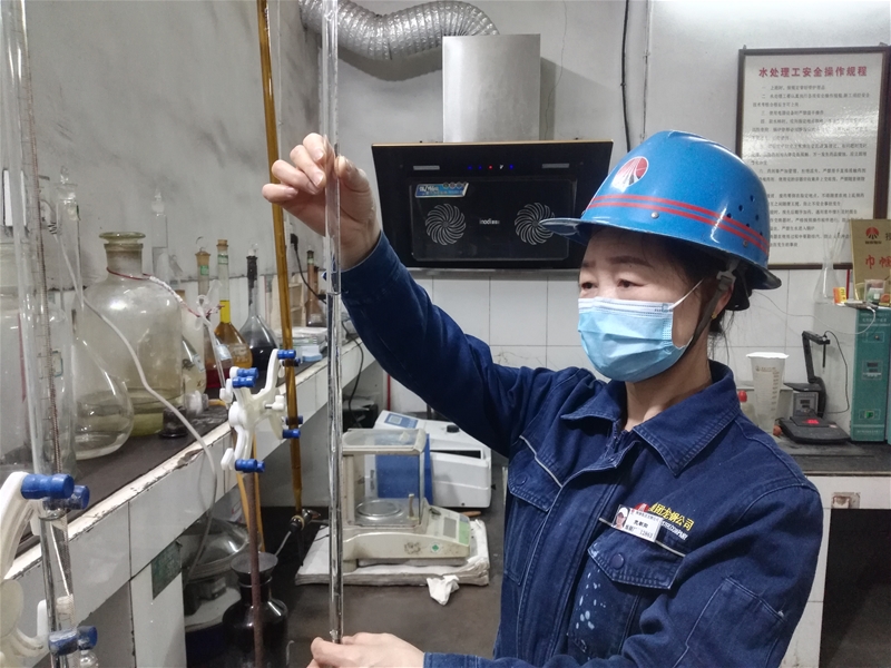 榮獲陜鋼“好媳婦”榮譽的黨朝陽平日既要照顧八十多歲的公公、婆婆,還得料理好自己的小家。但她的工作也干得有聲有色、毫不馬虎。這會她正在忙著化驗水質,剛接班,只見操作臺上擺滿了從轉爐、連鑄各個泵房取來的二冷水、結晶器水、除塵水水樣,她忙而不亂、井然有序地操作化驗器具,一會在濁度儀上監測水質濁度,一會用酸度計測量PH值,一會又忙著測水中懸浮物、含油量、磷酸根……