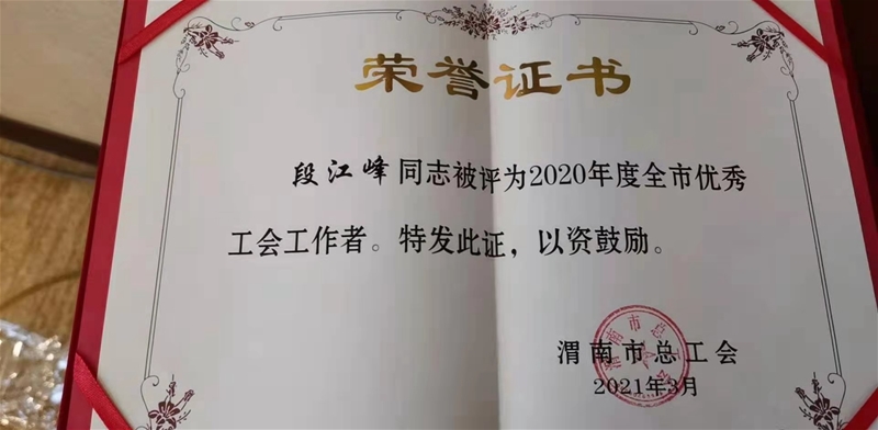 3月16日,在渭南市總工會二屆十四次全委(擴大)會上,龍鋼公司工會工作榮獲市總工會多項榮譽,并現場受到了表彰。龍鋼公司工會榮獲“工會在您身邊竭誠為您服務”主題活動創新服務一等獎和“基層示范點”榮譽稱號,段江峰榮獲2020年度全市優秀工會工作者。