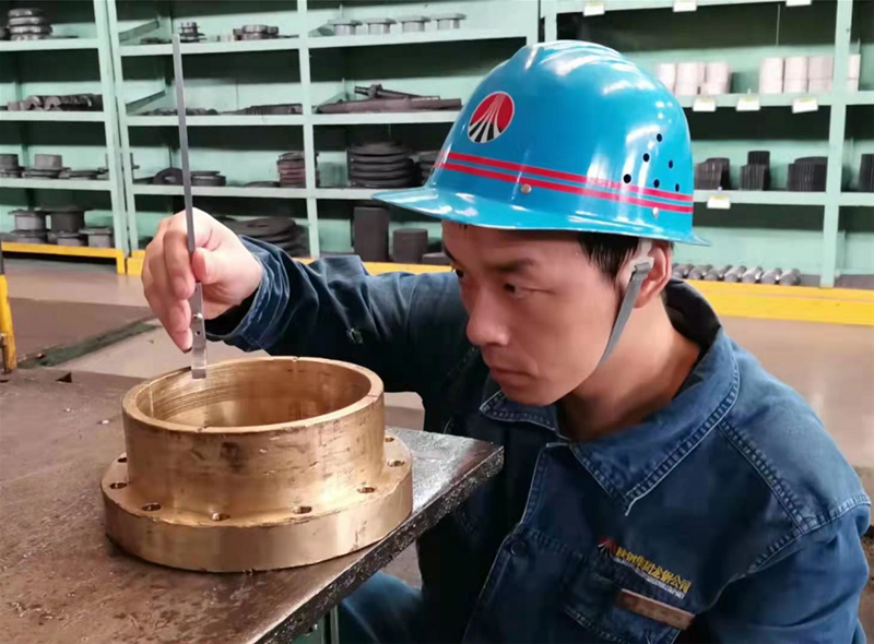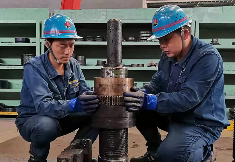 棒材一線在線使用的一臺380軋機晃動嚴重,嚴重影響軋線正常運行。經技術人員檢查下線設備,發現380軋機銅法蘭與絲杠定位面磨損嚴重,導致定位不準,軋機晃動嚴重。針對此問題,技術員決定重新測量銅法蘭與絲杠間隙,利用車床精修銅法蘭尺寸,確保安裝后與絲杠配合緊密。改造后,380軋機晃動問題得到了根本解決,確保了生產穩定順行。