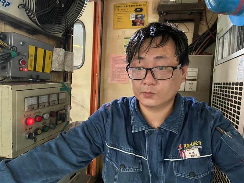 在板帶作業(yè)區(qū)40℃2CS操作臺里,操作室外火紅的鋼坯映紅了2CS操作工薛孟波的臉頰,他顧不上炙熱,正全神貫注進行出鋼操作,在高溫“蒸拿”房里書寫屬于自己的青春篇章。