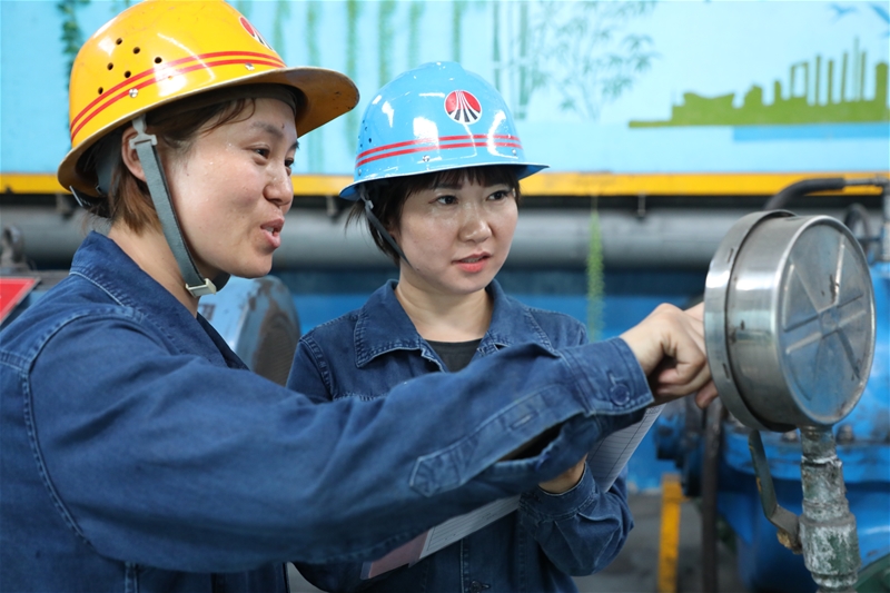 驕陽如火般綻放,水泵工王兵開啟棒二濁環(huán)增壓泵進口閥門,她白皙的臉龐被曬得通紅,即便如此,她仍然以女工特有的耐心與堅韌,守護著水系統(tǒng)的平穩(wěn)順行。