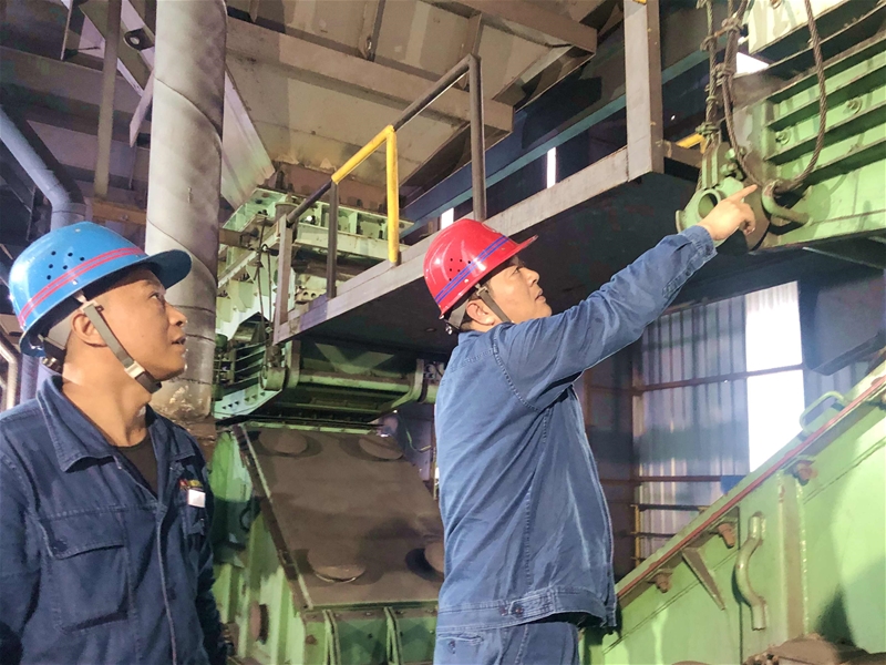 伴隨著配重一節一節往上走,四五噸重的配重不到一會兒就被幾個年輕工人拉到指定位置。幾個小伙子臉上、身上全是汗水和油污,但現場沒有一個人叫苦叫累,大家埋頭苦干、一心一意干著自己的工作。皮帶配重環節結束后,維修鉗工又開始裁剪皮帶,角磨機與皮帶之間瞬間產生出滋滋的摩擦聲……他們雖然累、雖然苦,卻依然堅守著,拿出自己的技術“絕活”,全力攻克檢修這個“硬骨頭”。