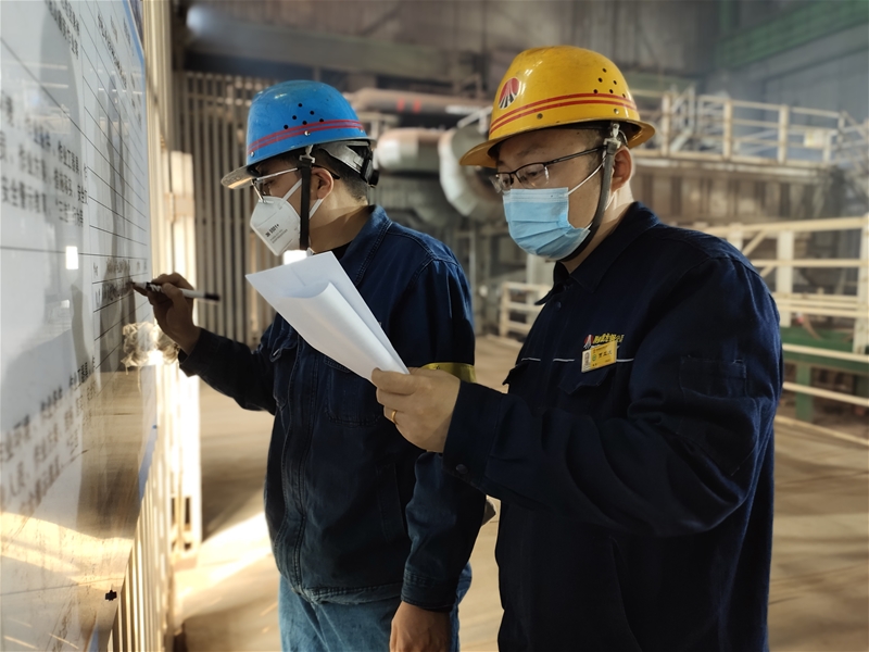 “今天混料機積料清理已經完成。”“臺車拆卸爭取明天早上拆卸完畢。”“轉臂式液密封環冷機改造項目采取24小時輪班制度……”在400㎡燒結機檢修推進工作會上,檢修各項目負責人正在逐一匯報當日項目進度。
