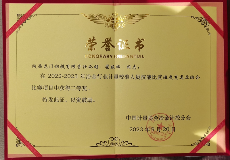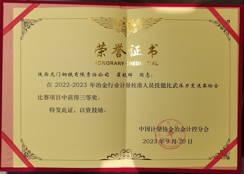 近日,龍鋼公司榮獲首屆全國冶金行業計量校準技能比賽優秀組織獎。同時獲得4項個人獎項。其中翟毅輝《溫度變送器綜合比賽》獲得二等獎、《壓力變送器綜合比賽》獲得三等獎,馬曉剛《電子秤綜合比賽》、高偉芳《溫度變送器綜合比賽》獲得三等獎。