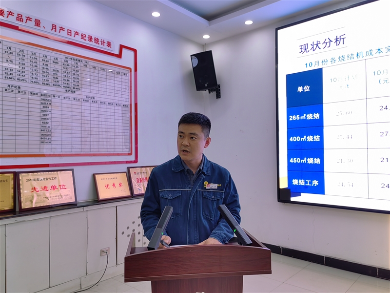 評價陳述中,煉鐵廠各科室科長、高爐爐長、燒結機機長、輔助單位工段長均立足鐵前降本實際,對11月份開展的19項精細化項目進行詳細陳述。由各專業組形成的聯合評審組,從現場陳述、措施應用、取得成效三方面進行評價打分,現場比、學、趕、超氛圍濃厚,大家在交流互鑒中,精準操作思路,細化操作步驟,促進鐵前各項管理工作更加標準化、規范化、專業化。