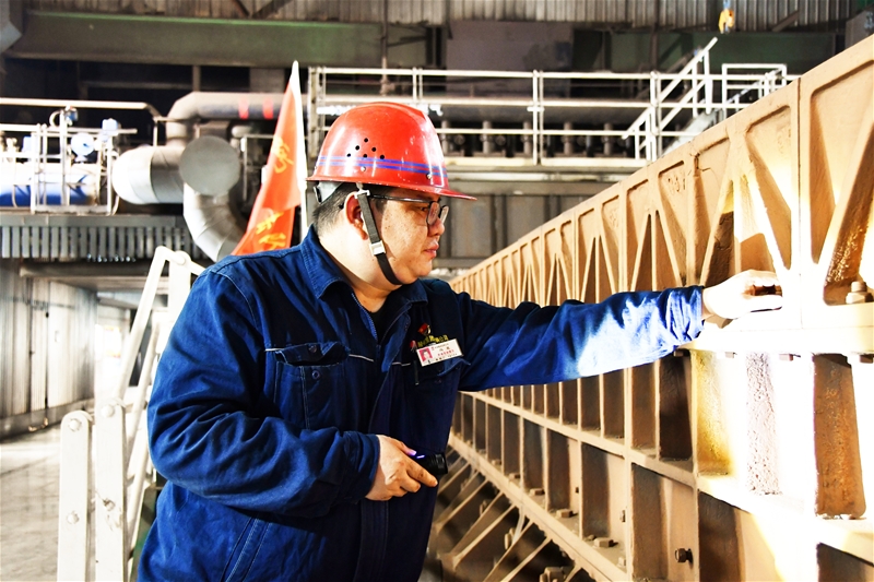 燒結(jié)工序設(shè)備點(diǎn)檢員許智平是設(shè)備改造攻關(guān)小組的一員。他每天穿梭在生產(chǎn)現(xiàn)場(chǎng),用腳步丈量設(shè)備之間的距離,手持工具望、聞、問、切,確保每臺(tái)設(shè)備診斷到位,用心呵護(hù)每臺(tái)設(shè)備。“現(xiàn)場(chǎng)排查出的設(shè)備問題,我都會(huì)記錄在隨身攜帶的小本子上,利用下班時(shí)間,在網(wǎng)上搜集資料,尋找解決辦法,直到所有問題銷號(hào)完成,我才放心。”作為一名技術(shù)人員,許智平在不斷創(chuàng)新中尋找設(shè)備低成本運(yùn)行的最佳答案,為鐵前低成本生產(chǎn)貢獻(xiàn)力量。