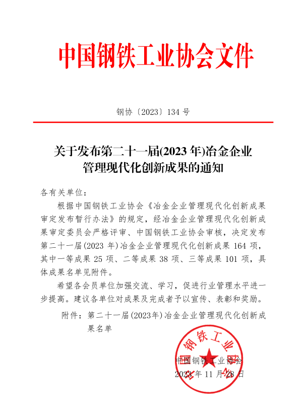 近日,從鋼協(xié)〔2023〕134號文件獲悉,在第二十一屆(2023年)冶金企業(yè)管理現(xiàn)代化創(chuàng)新成果評選中,龍鋼公司3項(xiàng)創(chuàng)新成果獲獎(jiǎng)。其中《以智能化改造與“四型”建設(shè)為基礎(chǔ),打造氣體安全智慧運(yùn)行標(biāo)桿》獲得二等獎(jiǎng),《以經(jīng)營管控為核心構(gòu)建生產(chǎn)、成本與市場聯(lián)動(dòng)機(jī)制的實(shí)踐與探索》和《基于一罐制的低成本冶煉管理實(shí)踐》獲得三等獎(jiǎng)。