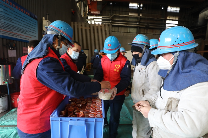 “大冷天的,吃點餃子暖暖身!”“慢點吃,小心燙!”一句句貼心的祝福,一份份鮮美的餃子,像是冬日的一縷陽光,溫暖著職工的心。