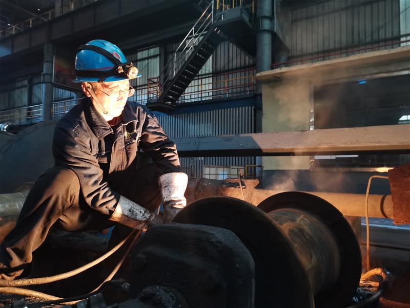 是什么讓他們?nèi)绱诵判氖?懷著好奇心,筆者詢問(wèn)了現(xiàn)場(chǎng)作業(yè)人員。原來(lái),針對(duì)加熱爐年修,軋鋼系統(tǒng)本著“讓一線員工少干活”的出發(fā)點(diǎn),摒棄前期人鏟車推的清渣方式,堅(jiān)持“大智慧在民間”思路,在全廠征集加熱爐清渣方案,提前在現(xiàn)場(chǎng)制作收集漏斗,通過(guò)集中回收到斗子中,運(yùn)用叉車進(jìn)行轉(zhuǎn)移,變?nèi)肆槿藱C(jī)配合,干活效率高了,一線員工的干勁更足了。