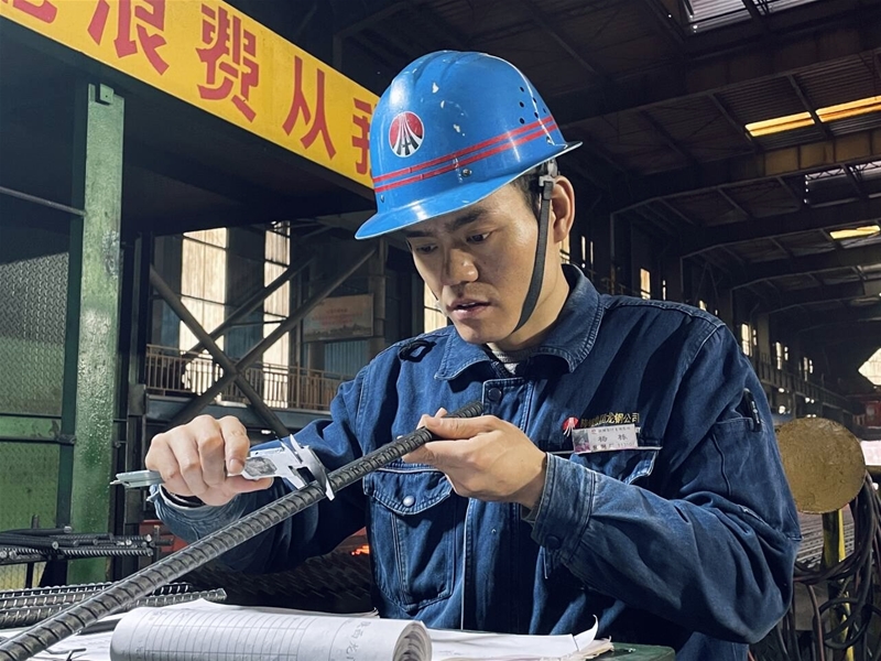 軋鋼工是軋線上的“眼科醫(yī)生”,他們的工具包可以檢測“毫厘”之間的微差。游標(biāo)卡尺、測溫槍、樣棒等,掌握軋制工藝及控冷工藝參數(shù),每十分鐘進(jìn)行一次料型測量,對(duì)負(fù)差調(diào)整做出正確決策,確保過程精準(zhǔn)管控。