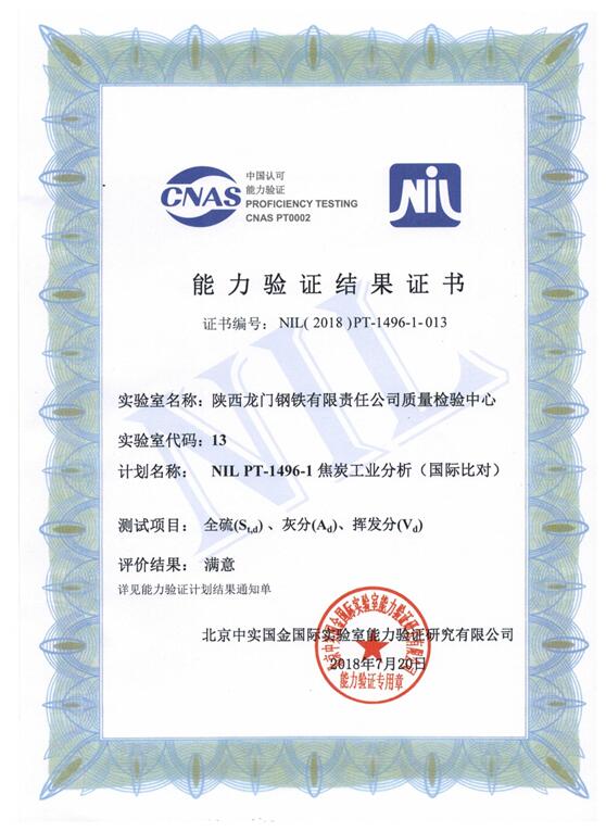 7月22日龍鋼公司質量檢驗中心焦炭工業分析能力驗證項目喜獲國際“滿意”結果,焦炭工業分析是公司繼“NIL PT-1436-1用火花源原子發射光譜法測定低合金鋼中化學成分(國際比對)”5個參數全部獲“滿意”結果后第二個順利通過能力驗證的項目,灰分、揮發分、全硫三個參數再次全部為“滿意”結果。