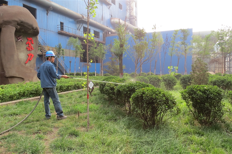 大膽成立綠化管護(hù)隊(duì),專職管護(hù)綠植。針對(duì)該廠綠化面積廣的現(xiàn)狀,大膽創(chuàng)新,成立僅有7人的綠化管護(hù)隊(duì),對(duì)廠區(qū)綠化帶雜物每天分時(shí)間段撿拾兩次并保潔,對(duì)廠區(qū)主干道綠化帶澆灌并沖洗葉面一次,每周對(duì)外圍綠化帶進(jìn)行深翻、澆灌兩次;每季度對(duì)冬青、樹(shù)木進(jìn)行修剪,同時(shí)做好適時(shí)、適度追肥工作。七人的工作可謂艱巨啊!
