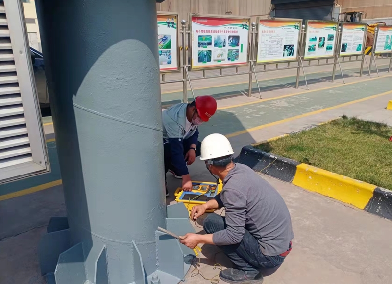 此次檢測,嚴格執(zhí)行防雷技術規(guī)范和檢測程序,共繪制完善防雷接地示意圖63張,對公司家屬樓、廠區(qū)所有廠房、煤氣柜、煤氣管網、加油站、變電站及通訊機房等設備設施進行了全面檢測。經檢測,各建筑物及設施設備均符合防雷要求。此次防雷檢測有效降低了雷雨季節(jié)設施設備的運行風險,為公司在雷雨季節(jié)安全運行奠定了堅實基礎。