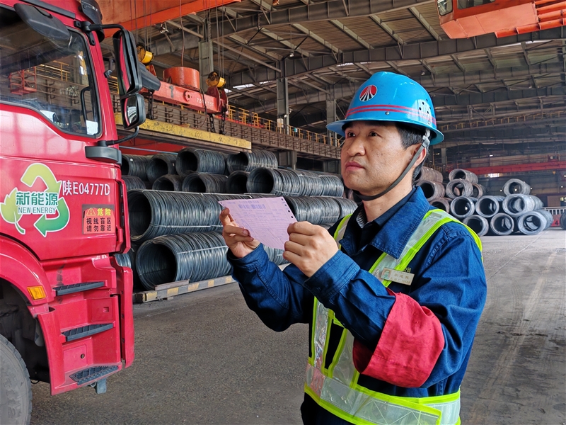 裝運鋼材出庫是軋鋼工序的最后一道關。在這個崗位上,裝車工主要對每車出庫鋼材做最后的檢驗,核對產品標識、每捆支數、重量、規格以及對運輸過程的防護措施等進行最后的檢查確認,確保出庫的鋼材根根是精品。同時要提前組織、合理調度車輛,加強現場出庫溝通,提高24小時鋼材配送到達率,及時把優質鋼材發送全國各地,不斷提高“禹龍”品牌服務質效。