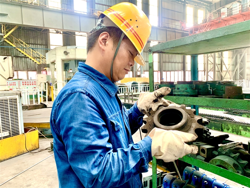 作為機(jī)修班長,雷新平除了管理班組日常事務(wù)外,每天必做的一件事情就是對設(shè)備進(jìn)行點(diǎn)檢,無論行車車輪是否有裂痕,還是減速機(jī)地腳螺栓是否緊固等,他都要仔細(xì)查看,爬上爬下,一圈下來,滿頭大汗,但是他從未懈怠過。