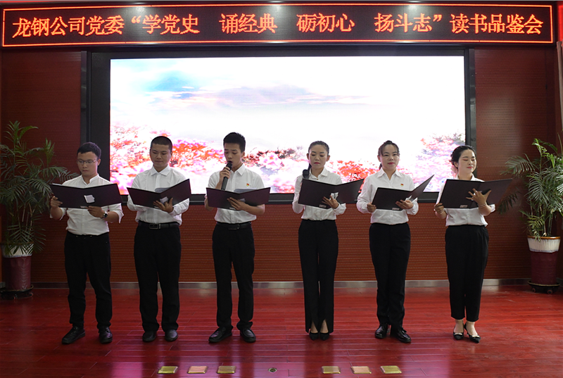此次讀書品鑒會以“學黨史 誦經典 礪初心 揚斗志”為主題,創新黨史學習方式,以中國共產黨百年奮斗歷程為軸線,分為開天辟地(《紅船,從南湖起航》)、艱苦奮斗(《沁園春·雪》《七律·長征》)、崢嶸歲月(《回延安》《黨旗頌》)、百年風華(《黨啊,我的母親》《盛世中國》《永遠跟黨走》)四個篇章,以誦讀詩詞經典的形式,全過程、全景式、史詩般展現了中國共產黨波瀾壯闊的百年歷程,環環相扣、由遠及近,層層深入,為全員奉上了一次形象生動的黨史學習大餐,將豐富的黨史知識轉化為助推龍鋼高質量發展的磅礴力量。