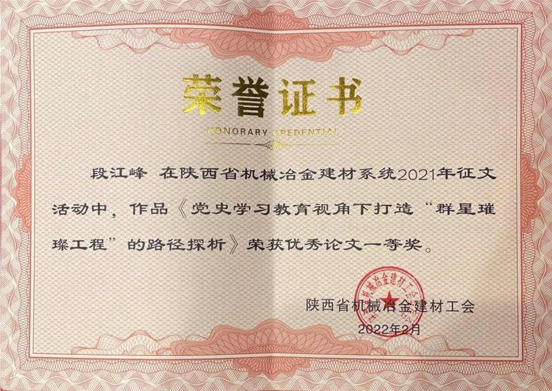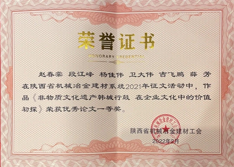公司論文《非物質文化遺產韓城行鼓 在企業文化中的價值初探》和《黨史學習教育視角下打造“群星璀璨工程”的路徑探析》榮獲優秀論文一等獎