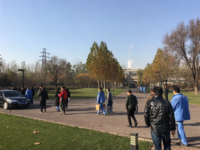 活動期間,90余名代表共同出席了太鋼杯全國冶金行業職工美術書法作品展覽開幕式,參觀了位于廠區內的太鋼博物園及廠史展覽館。進入廠區,白色外墻的生產車間掩映在高低錯落樹木植物之間,潔凈寬敞的柏油路上,各色線條清晰,機動車道與非機動車道分線而行,白色燈桿上,懸掛著勞動光榮、勞動偉大之類的文化標語,職工們身著淺藍色的工作服,愜然自信的行走。廠區噪音很小,完全感受不到工業生產對環境的破壞干擾。相反,倒覺得仿佛是進入了一座城市公園。十里鋼城完全與自然環境和諧一體,與城市和諧一體。