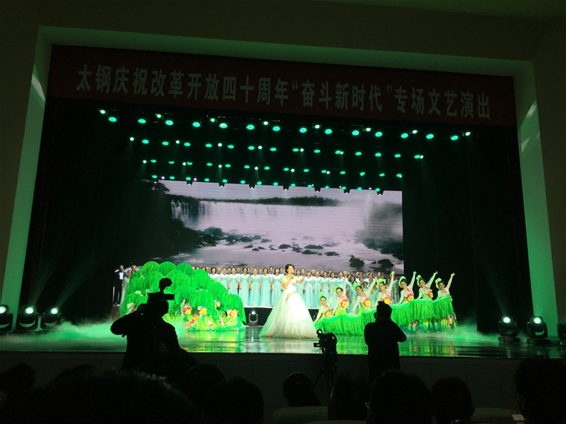 如果說參觀活動是開胃菜,其后的太鋼慶祝改革開放四十周年奮斗新時代專場文藝演出,則更讓代表們感受到太鋼職工深厚壯美的精神底蘊。開場節目《黃河鼓韻》把觀眾帶入到大浪滔滔、奔騰呼嘯的黃河壺口,黃土高原的古謠,把人們的神思帶到了磅礴廣闊的黃河呂梁。鼓槌輕擊,似安靜水流;鼓槌揚起,似萬滔奔鳴。傳統鼓樂竟如歌如訴,編排之美妙使人心曠神怡。太鋼職工表演的群口快板節目,把太鋼四十年發展變化巧妙穿插在丈母娘與四個女婿的笑語對話中,又見匠心之妙。所有的節目編排精美,大氣沉美,充分展示了太鋼職工高品位的文藝素養,文明禮儀的深厚積淀,折射出太鋼職工對于生活的熱愛,對于真善美的藝術追求,以及太鋼職工雙手創造的幸福文化生活。詢問得知,太鋼文藝協會有作協、美協、書法、攝影、舞蹈、體育等八個分會之多,文藝人才門類齊全,文藝活動豐富多彩。