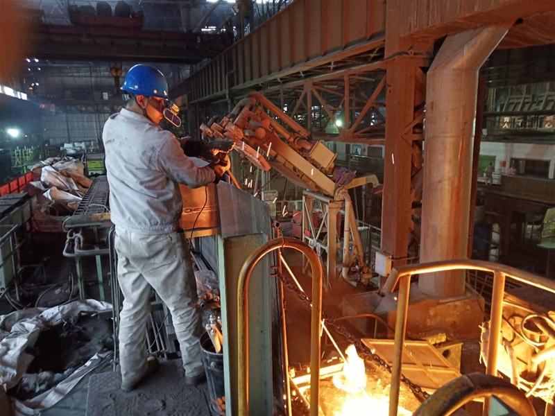 再苦再累不松勁。不論是刮風(fēng)下雨還是春夏秋冬,連鑄生產(chǎn)現(xiàn)場(chǎng)永遠(yuǎn)都被高溫灼烤環(huán)繞。而7月的連鑄現(xiàn)場(chǎng)在不透風(fēng)的廠房里儼然如同熱滾滾的“汪洋”。看,臺(tái)上中包工一個(gè)個(gè)汗流浹背,汗水從安全帽底下流到臉頰,下巴上的汗珠一顆、一顆掉在地面。眼睛早已被汗水模糊了視線,他隨手用袖口一擦,眨了眨泛酸的眼睛,又繼續(xù)忙活。臺(tái)下3CT的切割工站在火紅的鋼坯旁,鎮(zhèn)定地用氧槍在切割尾坯,臉頰早已被灼烤的發(fā)紫,衣服被汗水澆透又被高溫蒸發(fā),留下一道道白色的汗?jié)n,而手里握著的割槍卻始終保持一個(gè)動(dòng)作,直到尾坯被割斷。雖然工作服已經(jīng)被高溫灼烤到燙手,腳上的勞保鞋里面全是汗水,但是他仍然沒(méi)有停止自己的工作,收起氧槍后,使勁吹了一下掛在脖子上的口哨,又繼續(xù)指揮天車開(kāi)始吊運(yùn)尾坯。