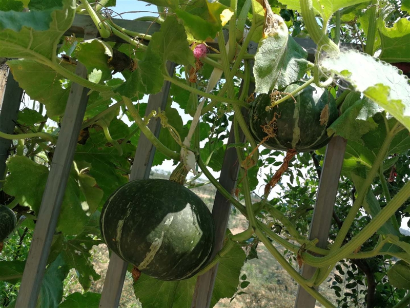 來到家里的后院,剛跨過后院門就看到爺爺種的各種花草,在遠一些是這個季節(jié)的蔬菜。從記事起爺爺就愛種花草,今年也一樣,葫蘆藤上結(jié)滿了小葫蘆,隨風擺動,就像是一群葫蘆娃在向我打招呼,情不自禁的摘下一個洗了洗讓孩子玩。記得小時候自己偷偷的摘了個葫蘆去和同伴們玩,回來讓爺爺一頓好罵。后院的大部分地方爺爺都種上了菜,大片的辣椒,幾個黃瓜騰,西紅柿,茄子和豆角……看著這些新鮮綠色的食材我覺得我胃口大開。
