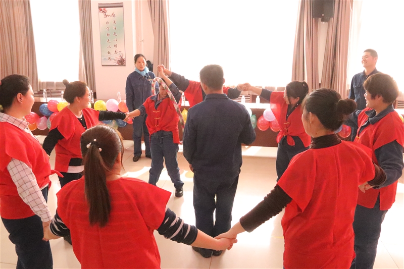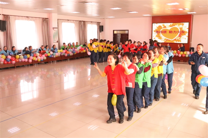 下午兩點,來自各單位的60余名女工代表歡聚一堂,共同慶祝自己的節日。此次團隊游藝活動共有五個參賽隊,設置“黃金拍檔、穿越呼啦圈、鐵人接力、助力火車”四個項目。活動過程中,參賽隊員個個精神抖擻、奮勇爭先,盡情享受運動的快樂,充分展現了“半邊天”的智慧和奮發向上的干勁。由女職工自導自演的手語舞《讓愛傳出去》將活動推向了高潮。
