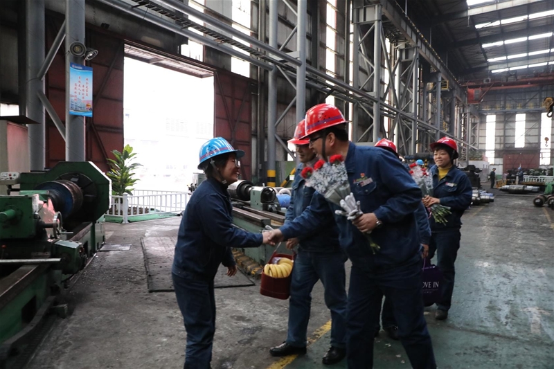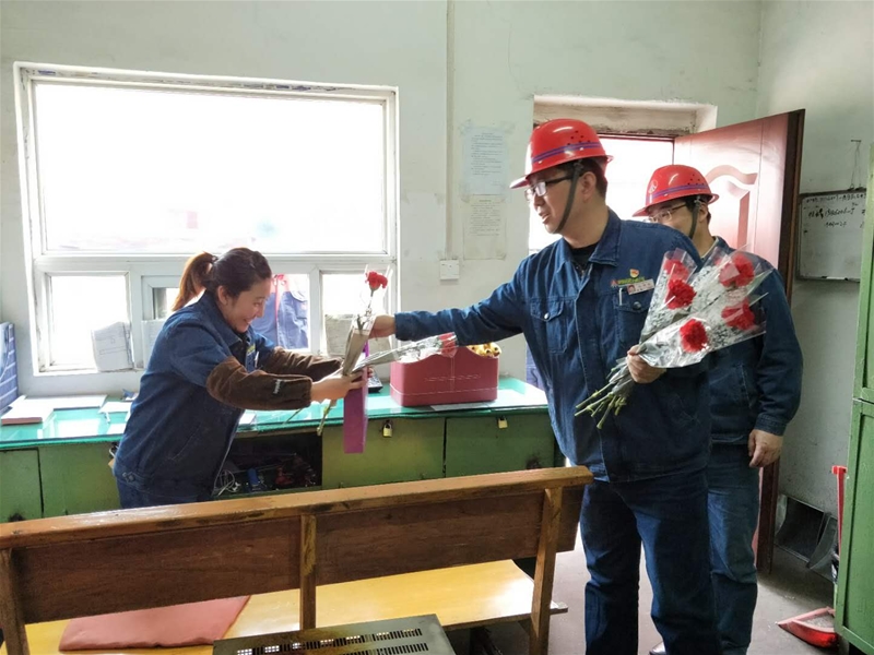 該單位領導還走進了生產線操作臺、成品區域等女工的崗位,一一進行慰問并送上鮮花。
