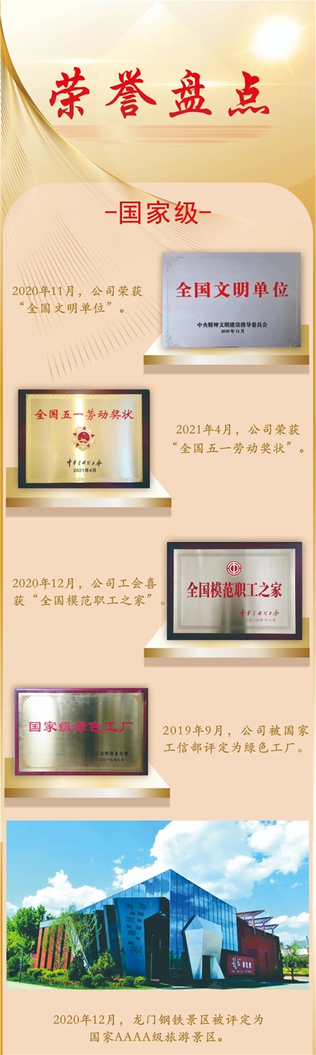 榮譽盤點是邁向美好未來的一次能量積蓄,新時代是奮斗者的時代。讓我們初心不改,砥礪前行,全身心投入到落實集團(tuán)“2.26”黨委(擴大)會議精神上來,集中精力辦好自己的事,干群同心奮戰(zhàn)“雙目標(biāo)”、夯實“雙掛鉤”、嚴(yán)格“四類層”,始終牢記“感恩、知責(zé)、律己、有為”八字要求,扎實踐行“黨建領(lǐng)航、班子引領(lǐng)、干部走在前列”工作機制,扛死肩、硬負(fù)責(zé),以龍鋼人的擔(dān)當(dāng)和使命,譜寫更加輝煌的新篇章。