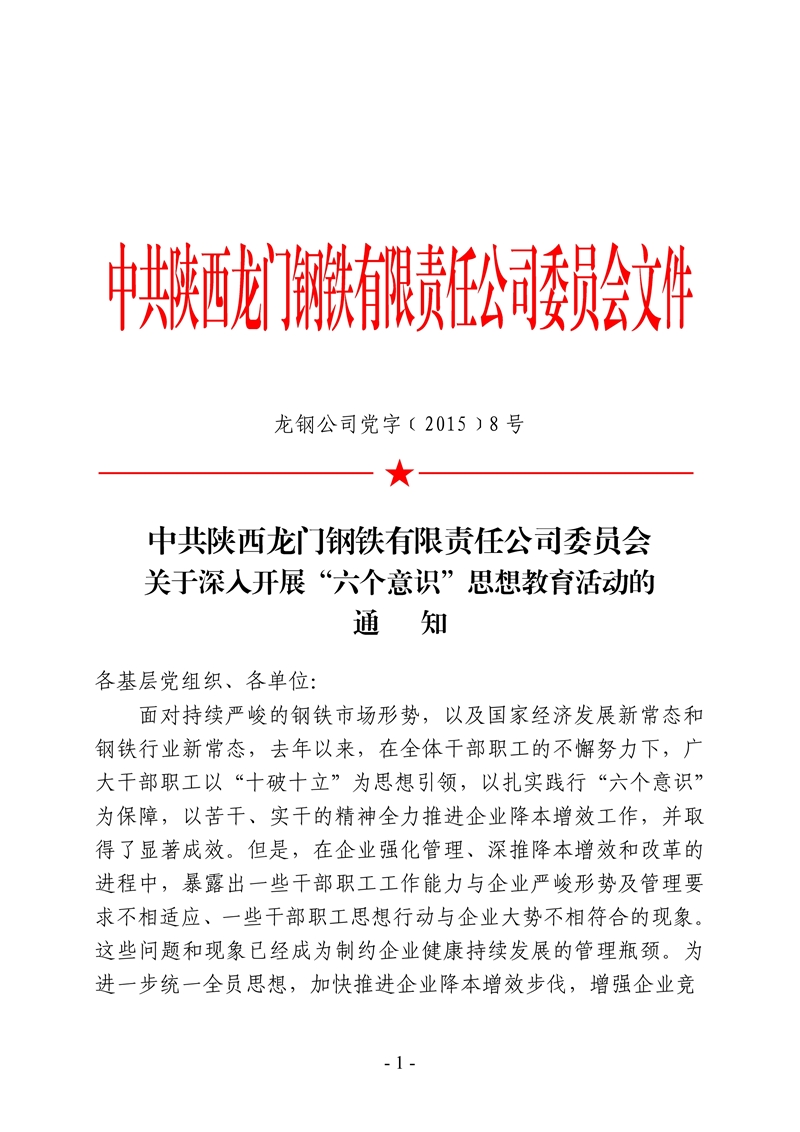 中共陜西龍門鋼鐵有限責任公司委員會關于深入開展“...